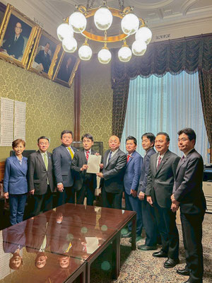 麻生芝山町長と平山横芝光町副町長が、全国治水砂防協会の要望書を持参。