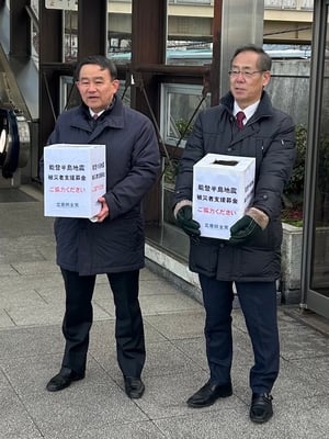 2024/01/09 1/9(火) 成田駅西口で能登半島地震被災者支援募金活動を行いました。 わが立憲民主党は、全国で能登半島地震被災者支援募金活動を展開しています。今朝は7時から8時過ぎまで、油田清成田市議とともに成田駅西口で実施。 通勤の忙しい時間帯にも拘らず、皆様のご協力を賜り、合計で8,885円集めることができました。厚く御礼申し上げます。 tagPlaceholderカテゴリ: