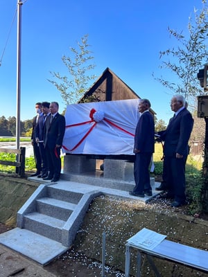 80年前の今日12月3日に、米軍B29重爆撃機に体当たりし敵機を撃墜せしめたものの、香取市西田部地崎の畑に墜落し、戦死した澤本政美少尉。その功績を讃えるための石碑が完成し、その除幕式と祝賀会が行われました。